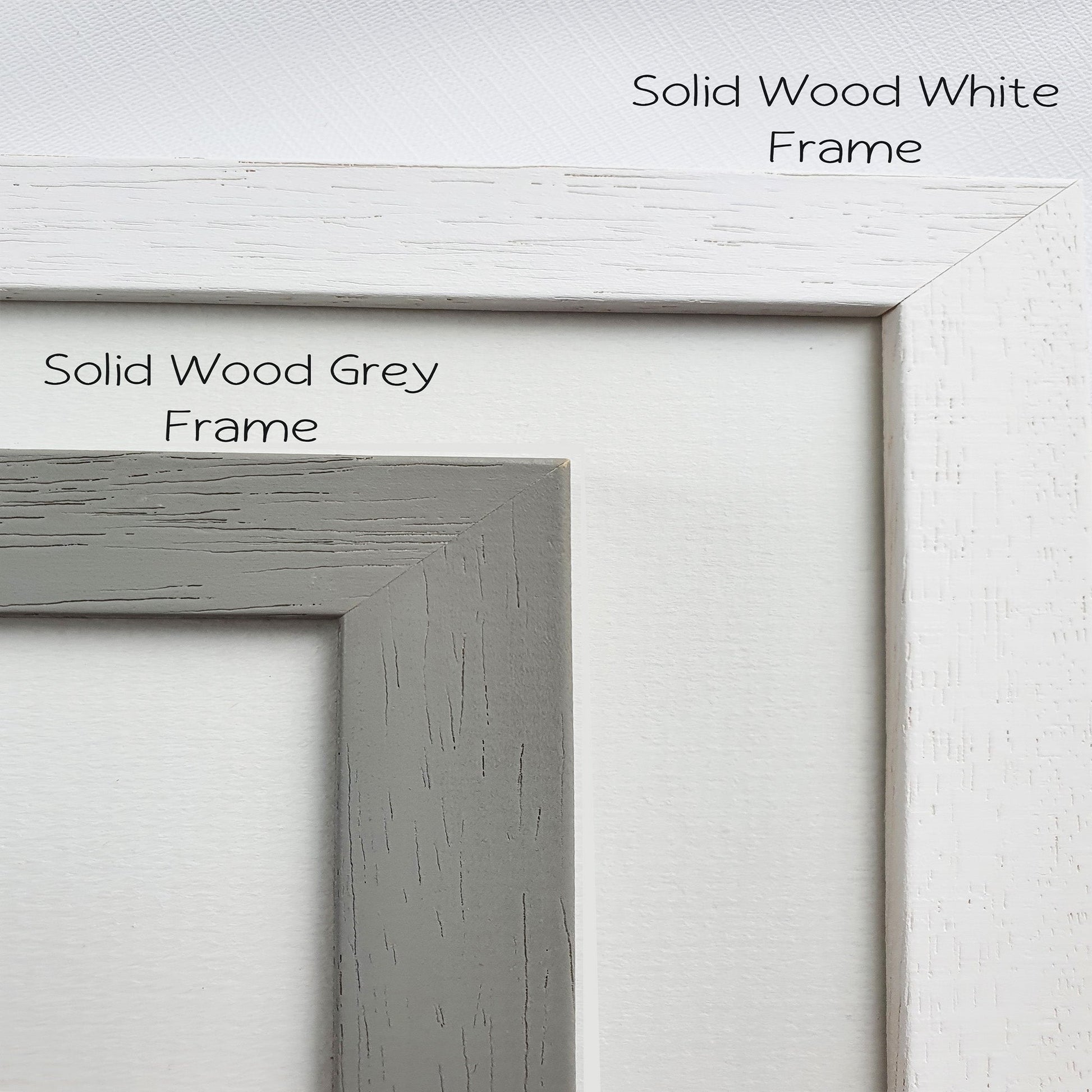 You can choose from our locally sourced solid wood frames in two finishes: white and grey. Please choose ‘unframed’ if you would like to frame the prints on your own.